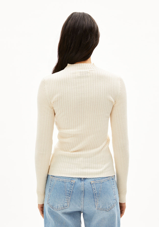 Deze dames coltrui combineert een moderne uitstraling met tijdloze elegantie. Het verfijnde ontwerp zorgt voor een verzorgde en stijlvolle look die bij elke gelegenheid past. De hoge kraag geeft het geheel een chic accent en biedt extra bescherming op koelere dagen. Dankzij de comfortabele pasvorm is de trui ideaal voor dagelijks gebruik en eenvoudig te combineren met verschillende outfits.