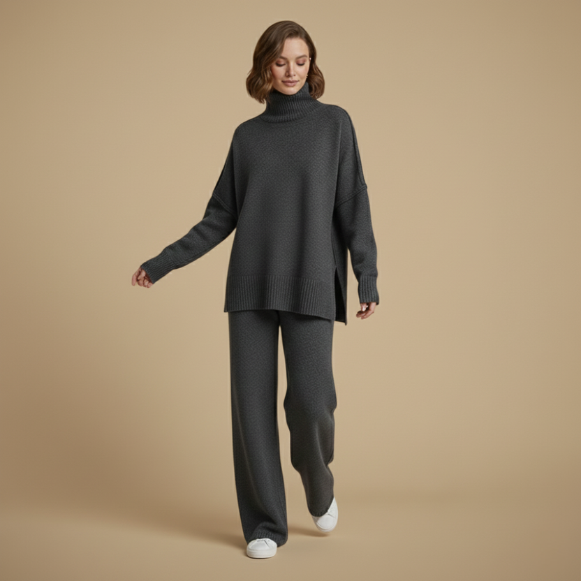WINTER SET MET WIJDE BROEK EN TRUI MET HOGE KRAAG